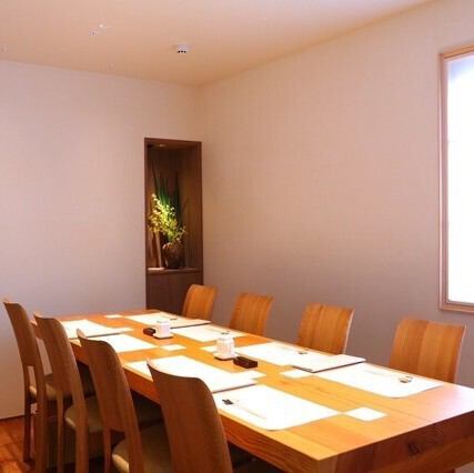 8名様までご利用いただける個室も完備。プライベートな空間で周りを気にせずお食事を楽しめる個室は、大切な方へのおもてなしや接待・会食、ご家族揃ってのお食事など様々な場面で大活躍。当店が自信を持ってご提供する旬の味覚、熟練の技を、心ゆくまでご堪能ください。